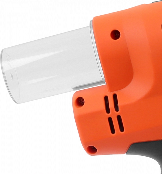 - Электронная защита от перегрузок: в случае нештатной ситуации, например, при заклинивании хвоста вытяжной заклепки внутри инструмента, заклепочник остановит работу и сообщит об ошибке, включив красный светодиодный индикатор на корпусе